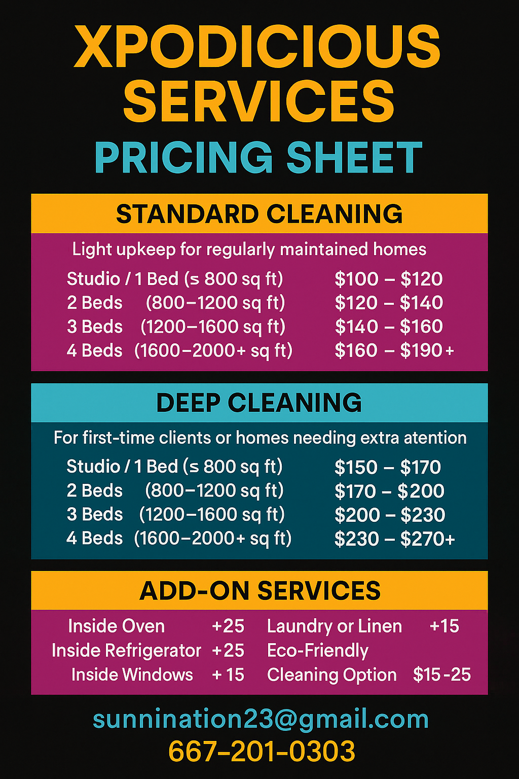 Welcome to Xpodicious Services LLC, your trusted partner for residential and commercial cleaning in Baltimore, MD. We're committed to providing quality and great service, ensuring a clean and healthy environment for you. Join us as we redefine cleanliness with a purpose.